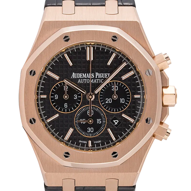 أوديمار بيجيه رويال أوك كرونوغراف ذهب وردي 41 مم حزام جلد أسود 26320OR.OO.D002CR.01